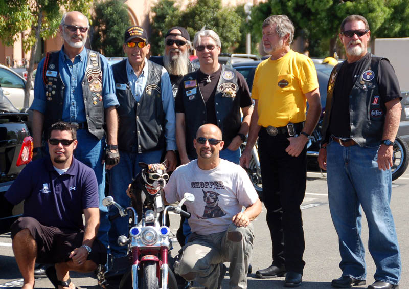 So from May of this year until his 2nd birthday (August 3rd), Chopper decided to donate $1 from the sale of every “Chopper The Biker Dog” Patch to the Wounded Warrior Project. At every appearance during this 3 month period, Chopper made it a point to bring the Wounded Warrior Project to the attention of his fans. And it worked. On the morning of August 3rd, Chopper appeared on KUSI to do a live interview discussing the Wounded Warriors with Marcus O. Barnes, manager of the "Warrior to Work at Wounded Warrior Project". Then, Chopper and his owner, Mark Shaffer, rode over to San Diego Harley Davidson to hook up with riders in the local HOG (Harley Owner’s Group) chapter who proudly escorted him to the Wounded Warriors Office in Liberty Station (the old Naval Training Center Facility).