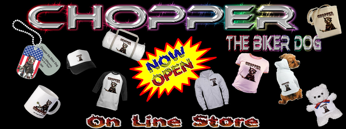 to order your own "Chopper the Biker Dog" Custom Merchandise |
