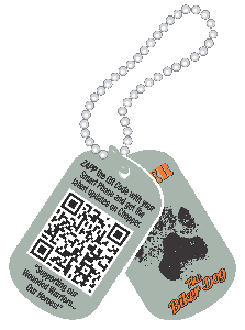 Be sure to scan the QR code on the back of the dog tag to get Chopper's latest updates |